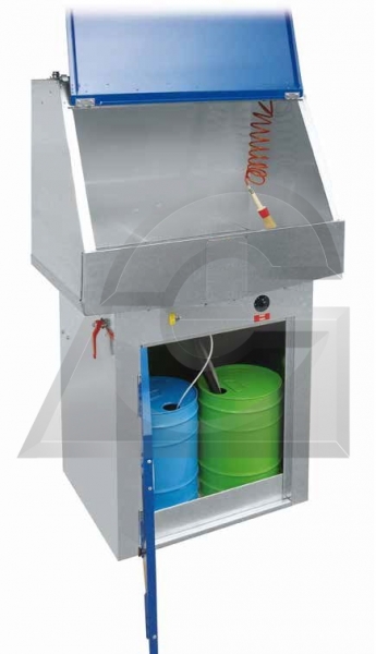 | 720B | Lava peças Manual MAXI - Especifico para diluentes. - Lavagem peças mecânicas, tampões e serigrafia. - Lavagem através pincel e bomba. - Extração automática vapores. - Nebulização final com diluente limpo. |