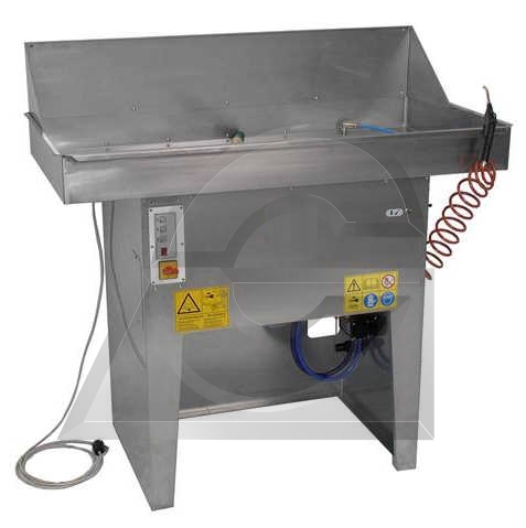 | 595B | Lava peças Manual AGUA QUENTE e DETERGENTE - Elétrica e pneumática para lavagem com água quente. - Lavagem peças mecânicas. - Lavagem através pincel e bomba. - Isolamento térmico. - Tanque aquecido 60Lt - Permite imersão das peças. - Pistola sopro para secagem final. - Totalmente em aço inox. |