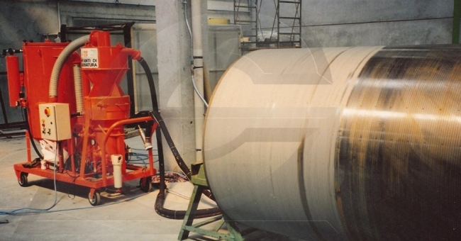 Atravès dum tubo anti-abrasivo flexível, o abrasivo aspirado entra no ciclone, é seleccionado, limpo de escórias e resíduos e pronto a ser utilizado de novo.