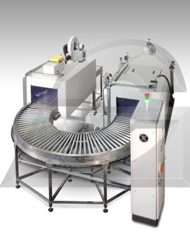 - Rolos, com eventuais acoplamentos a tapetes externos, para a carga/descarga das peças.