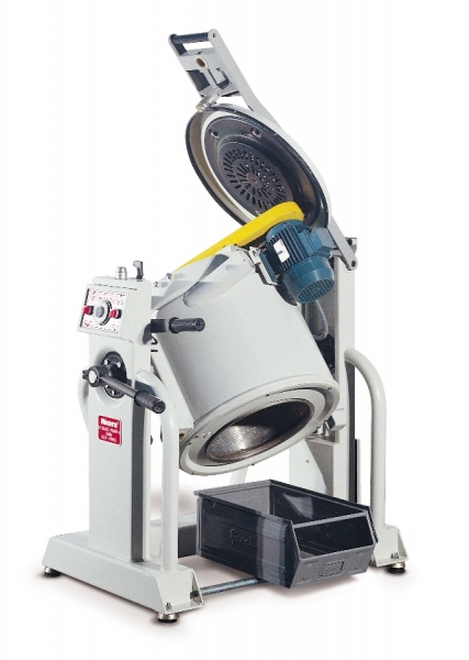 Outra gama são as secadoras centrífugas basculantes Serie "SAV", mais robustez, menos delicadeza, aconselhado para a secagem de peças metálicas e plásticas.